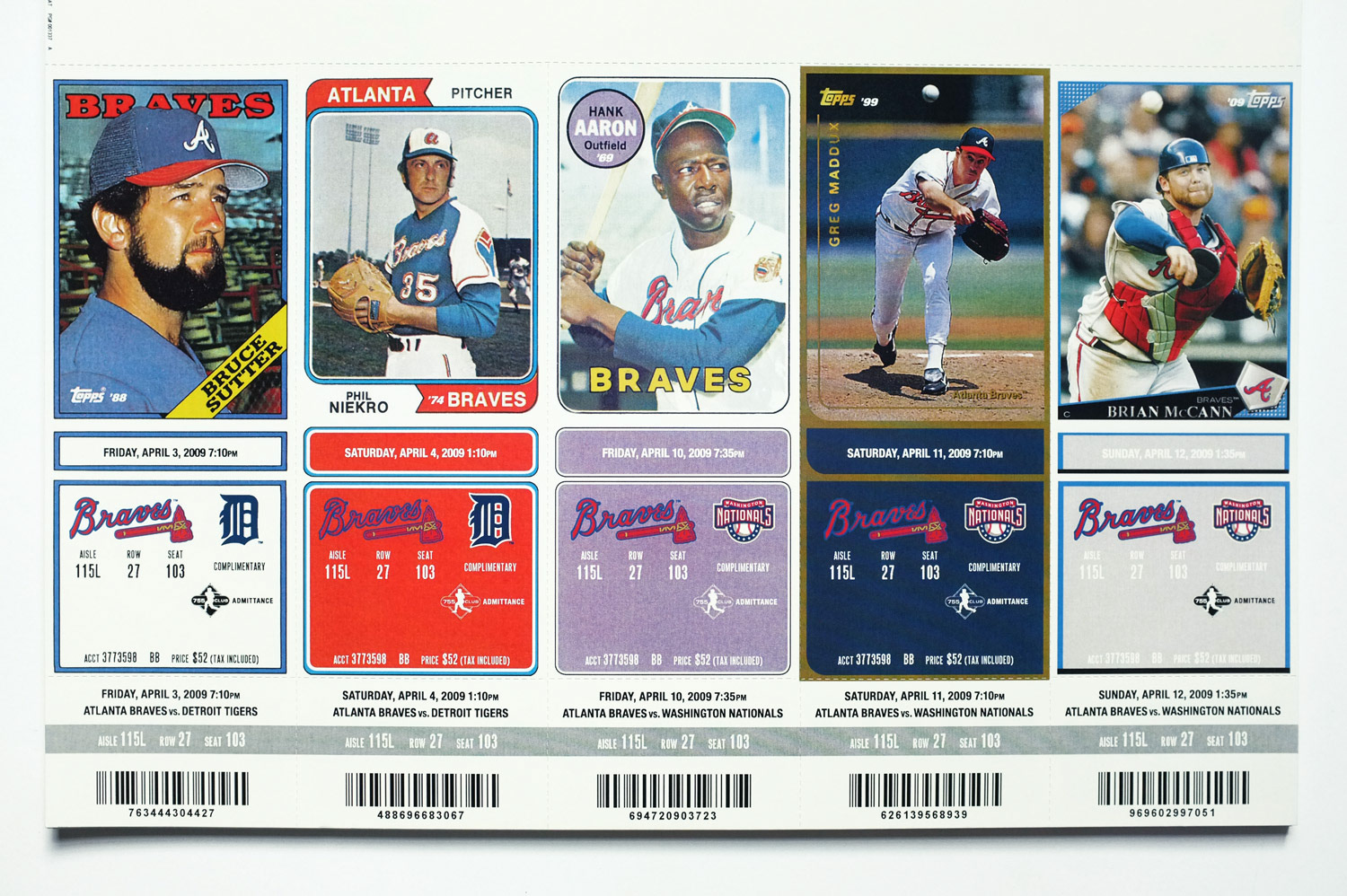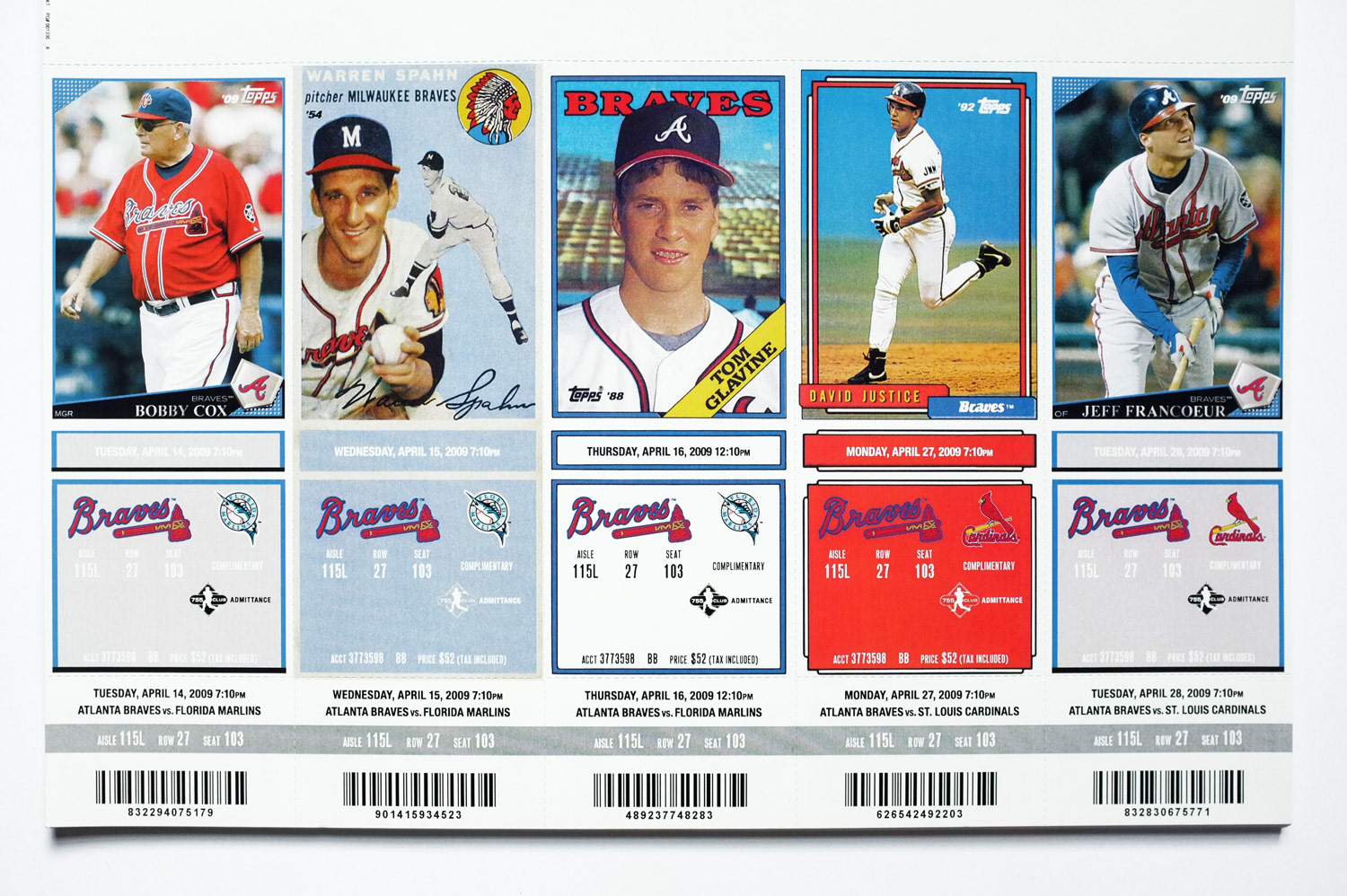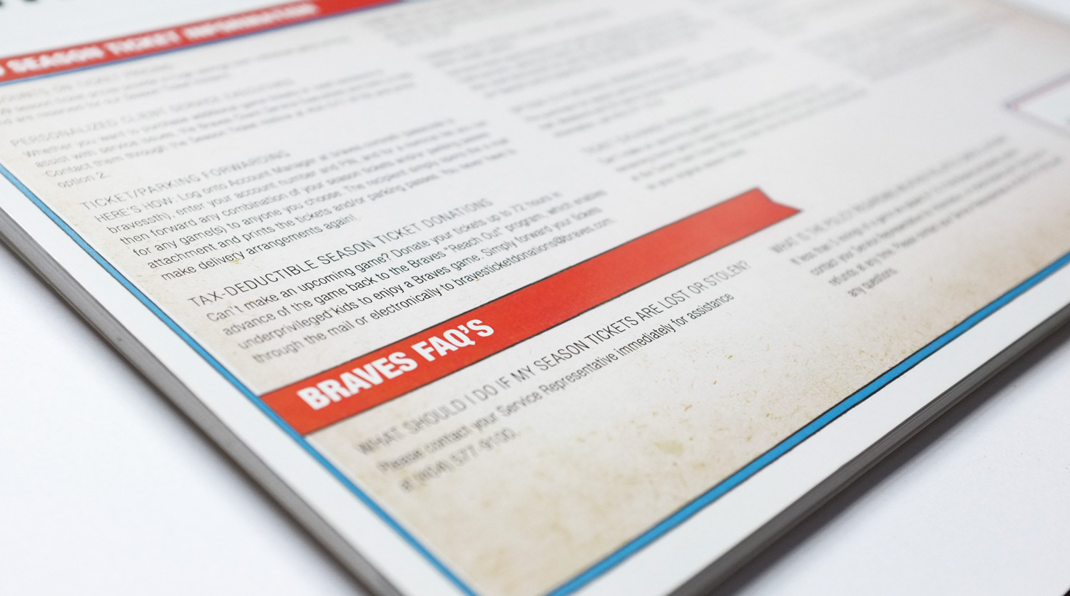 Art Direction and Design for the Atlanta Braves season ticket holder tickets and booklet.
