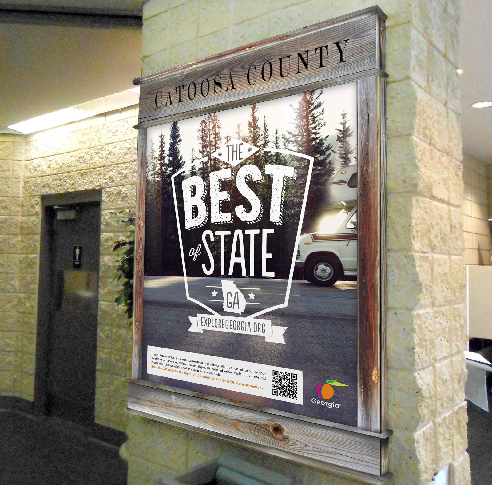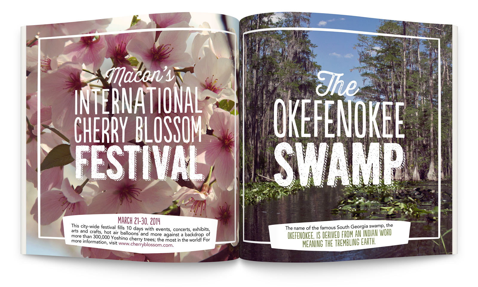 Art Direction and Design for the State of Georgia Tourism Campaign. A wide range of printed materials including posters, visitor information center signage, banners, visitor travel book, and digital.